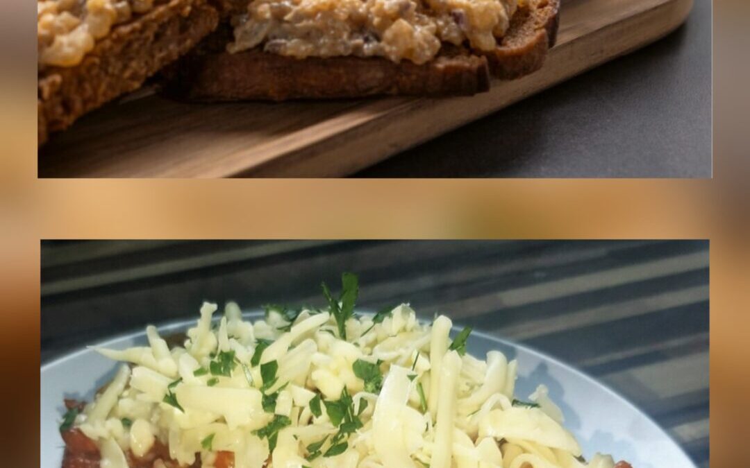 2 ks topinky s masovou směsí sypané sýrem